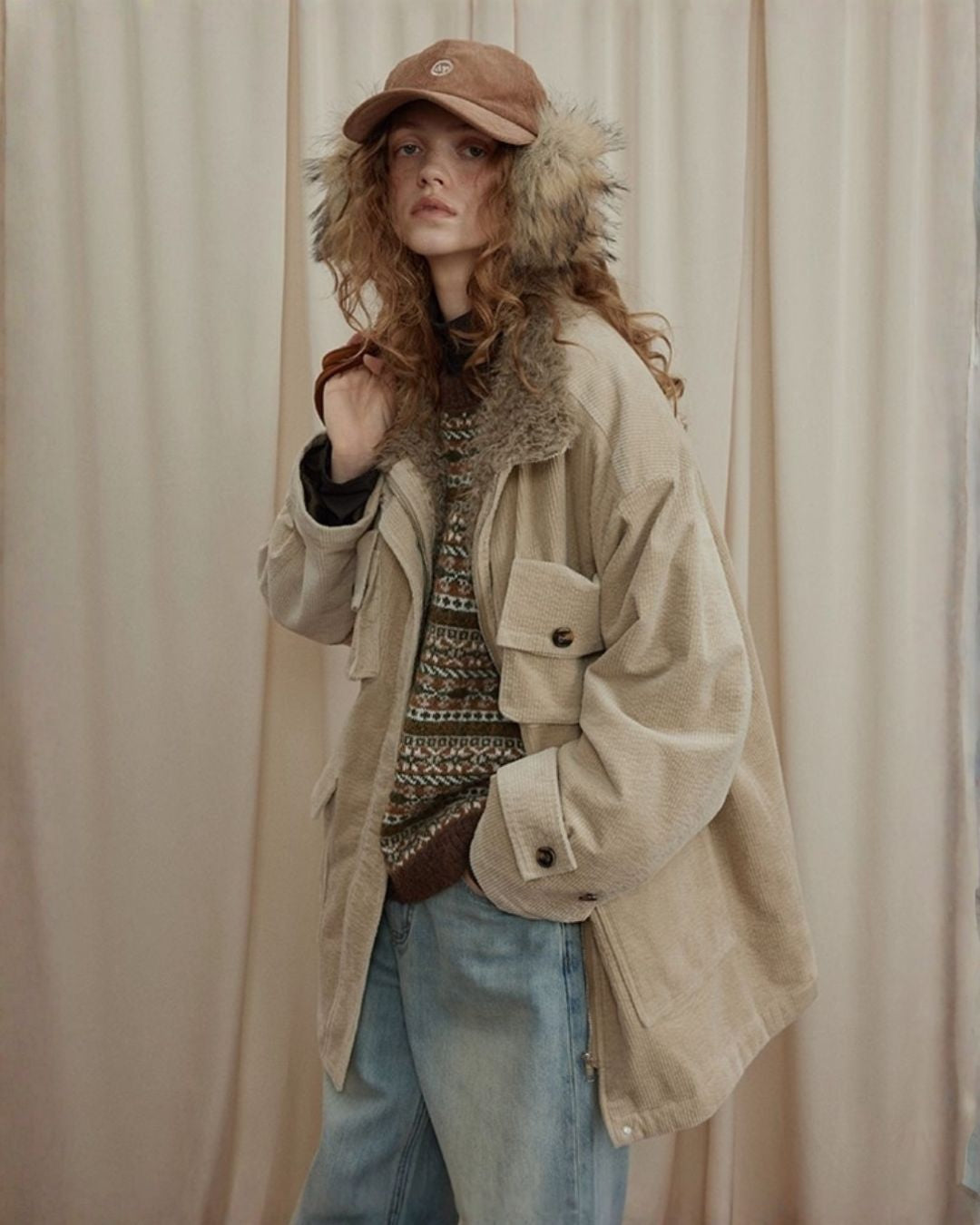 Big Boa Collar Washed Cotton Down Jacket JK062
