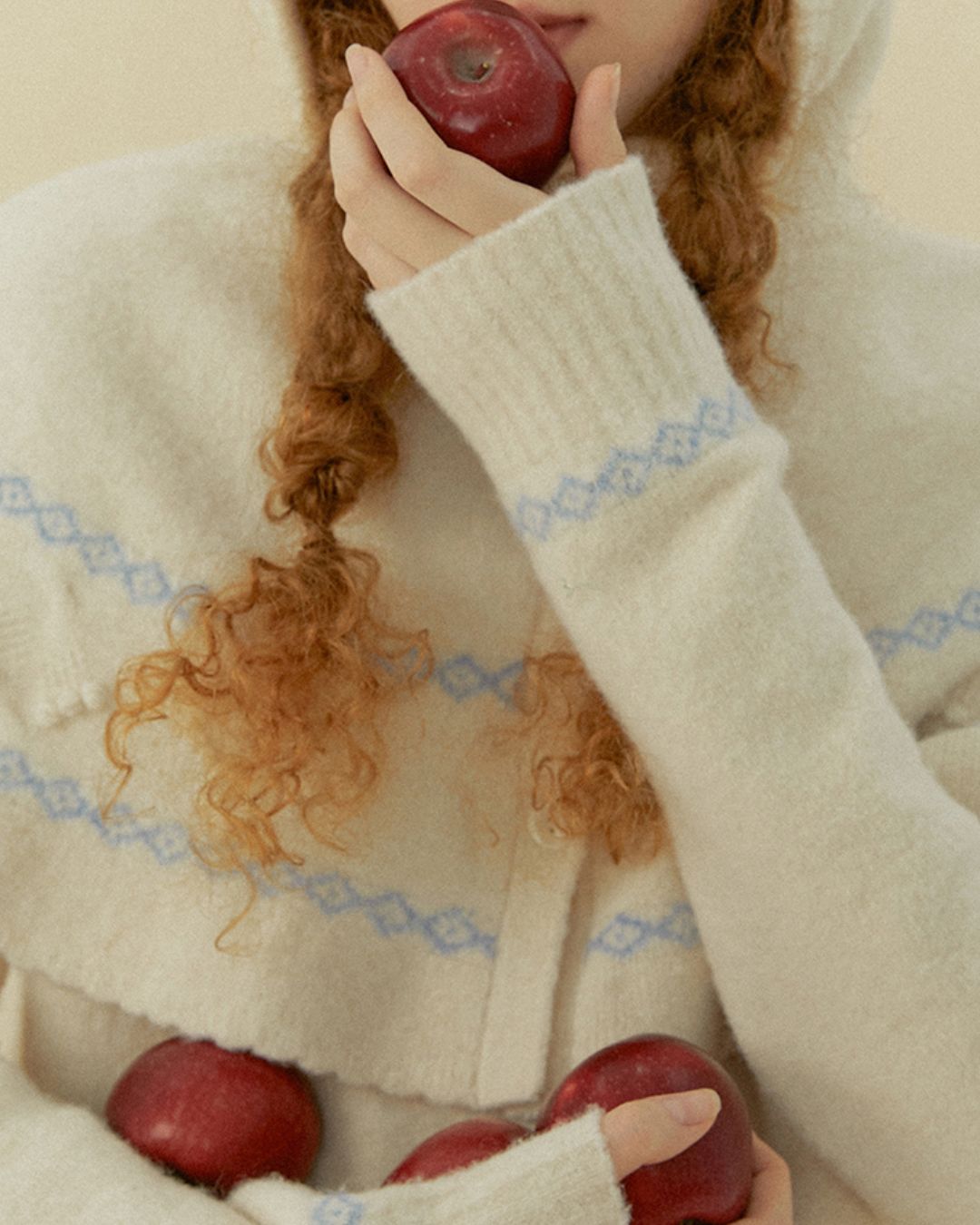V-neck Geometric Raw Edge Knit Cardigan KN076