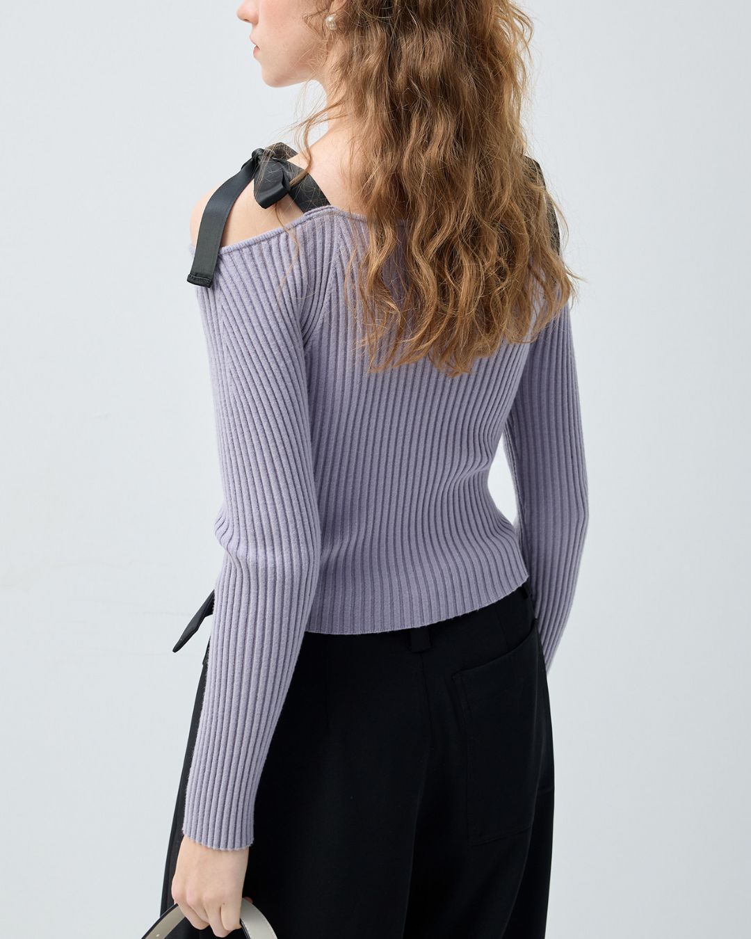 V-neck Off-the-shoulder Shoulder Strap Ribbon Knit KN103