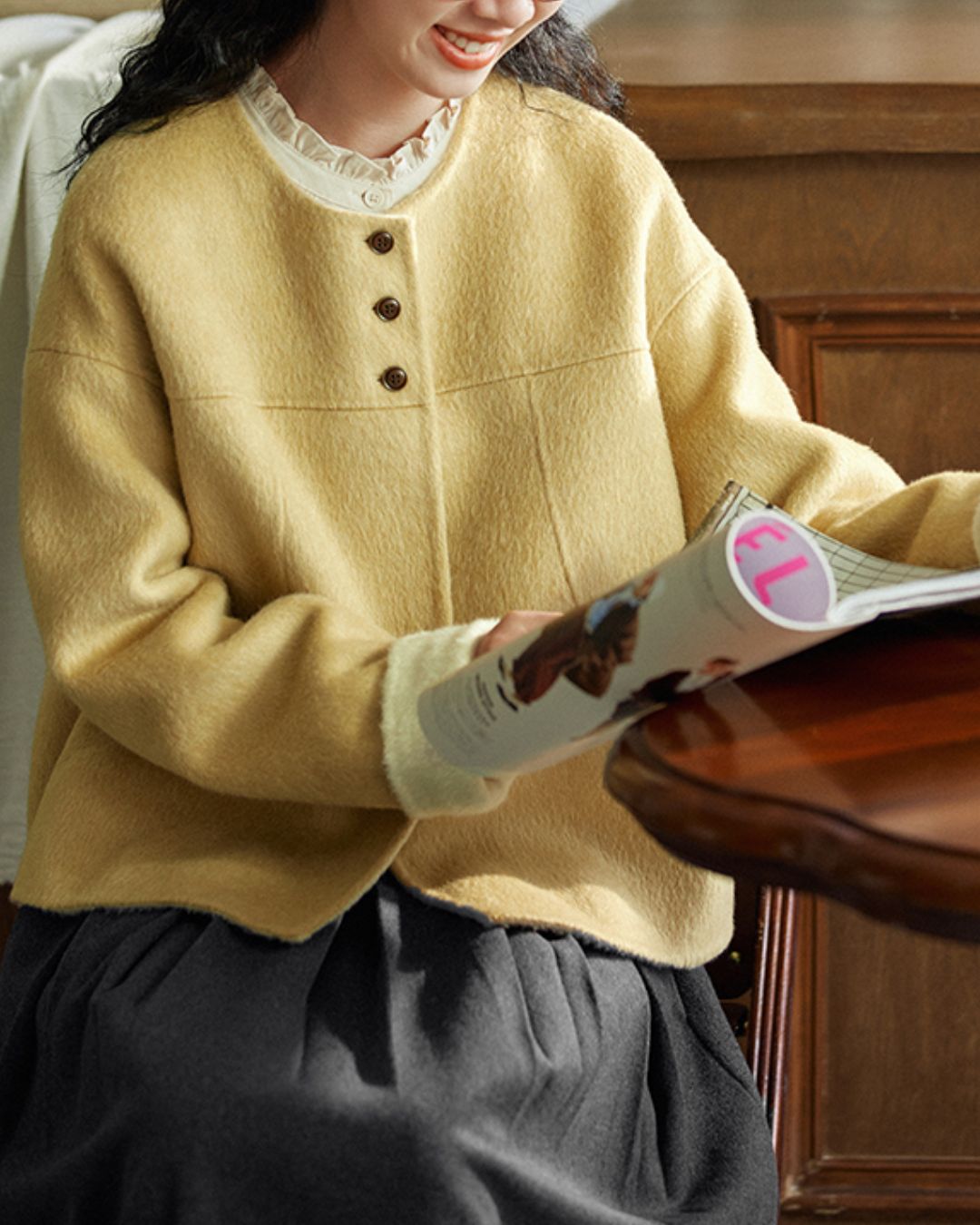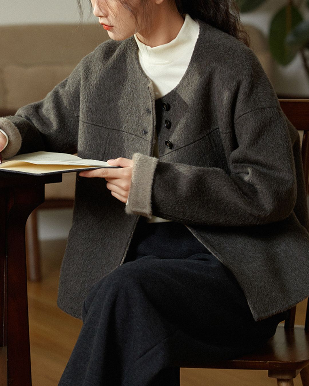 V-neck Geometric Raw Edge Knit Cardigan KN076