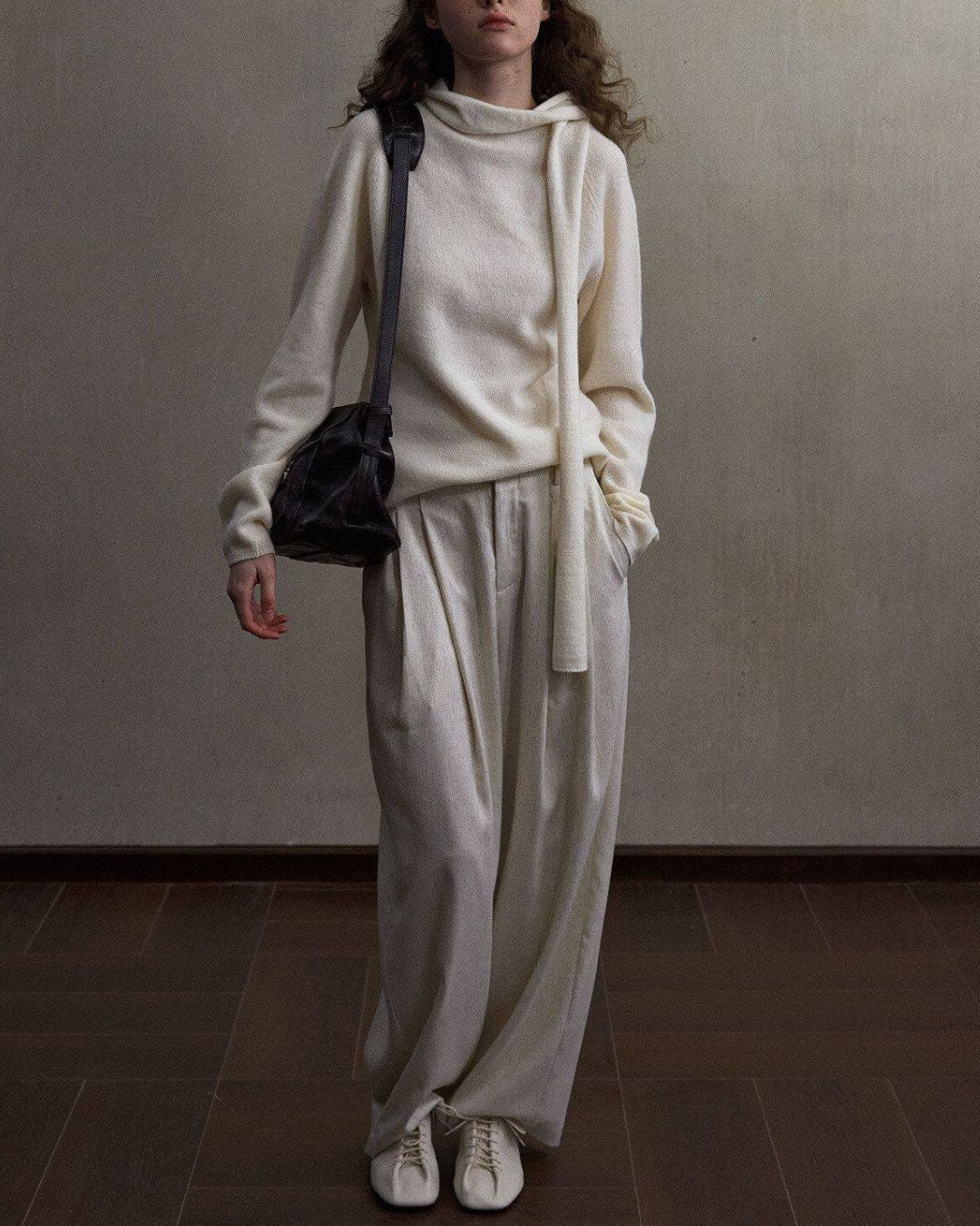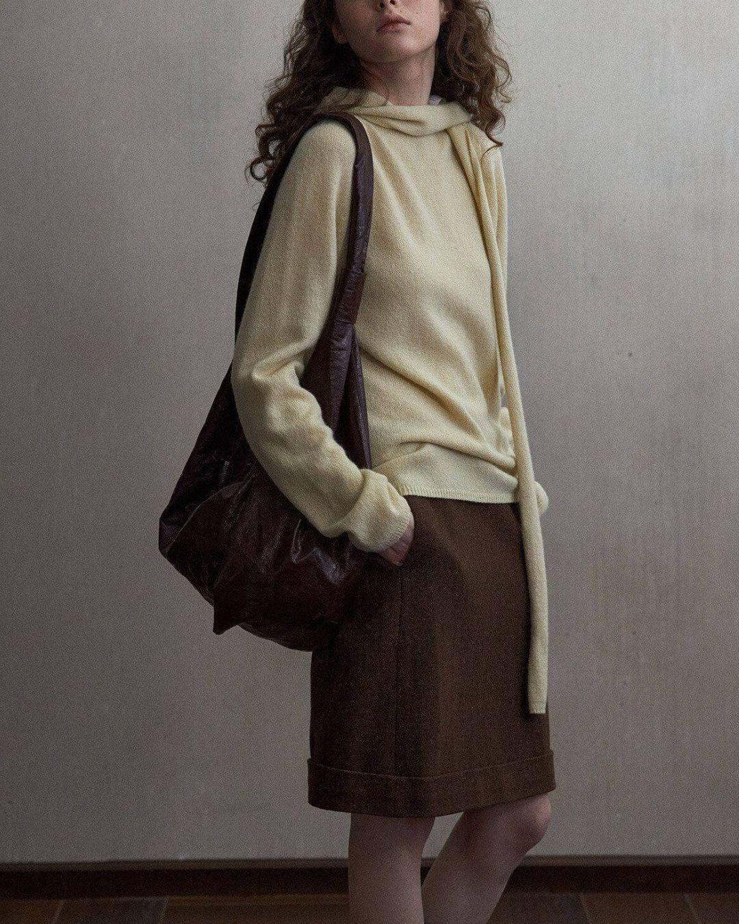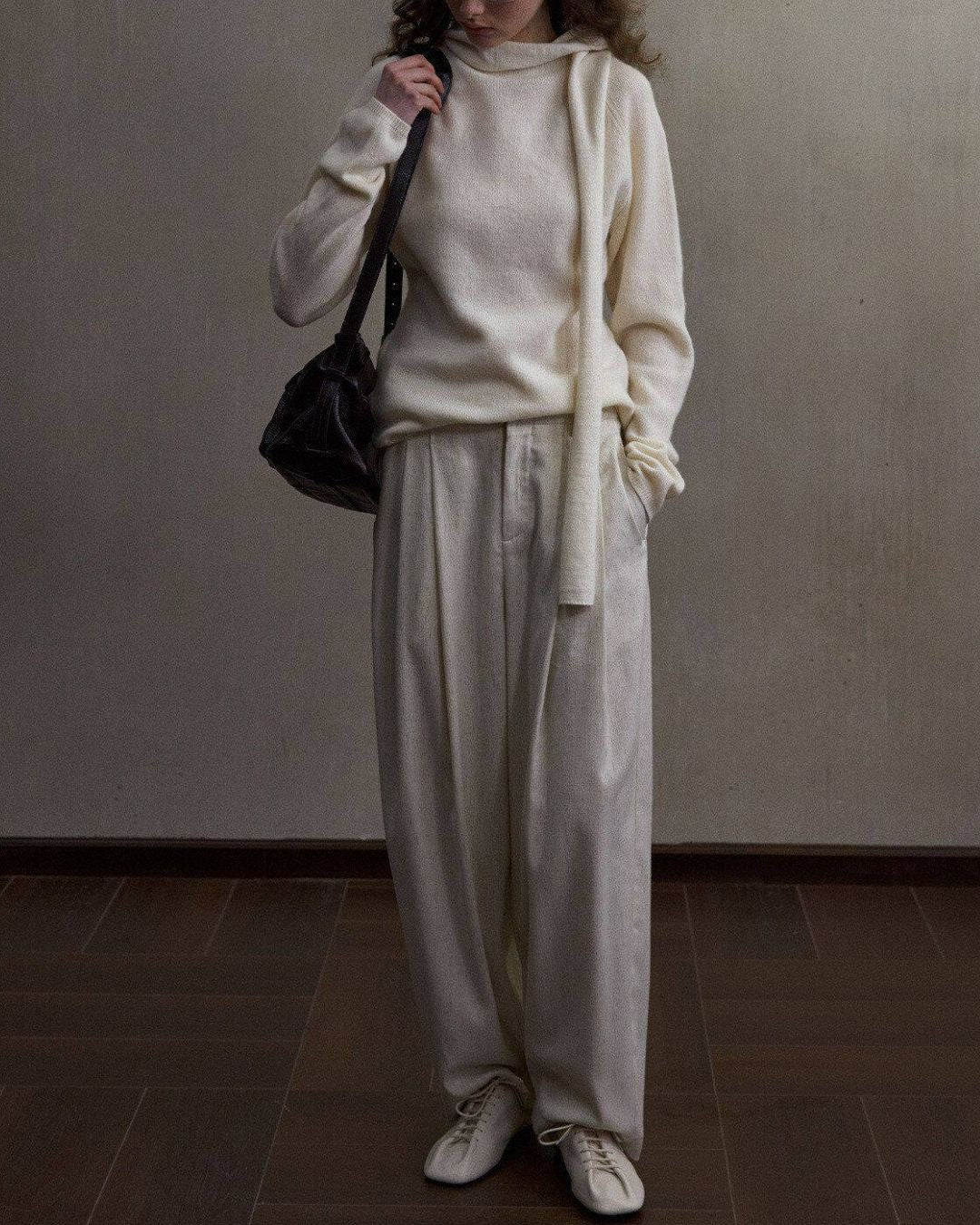 Basic Yak Wool Knit Hooded Scarf HG001