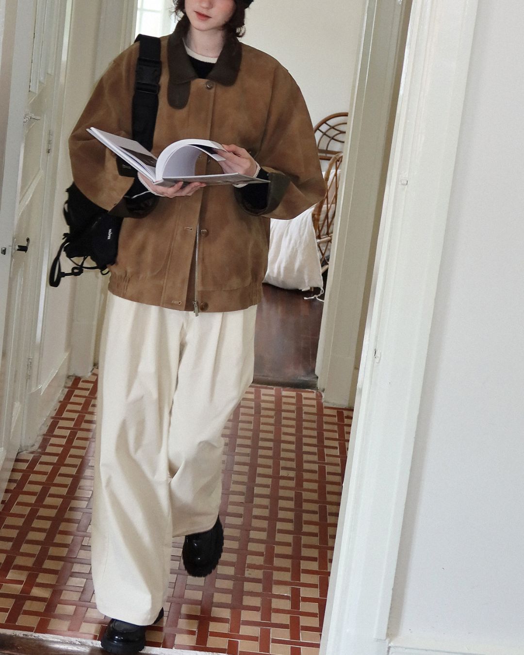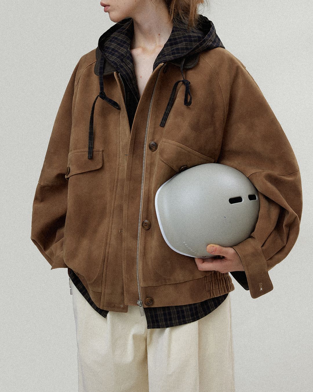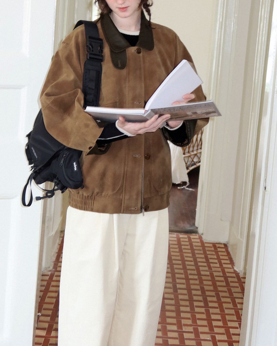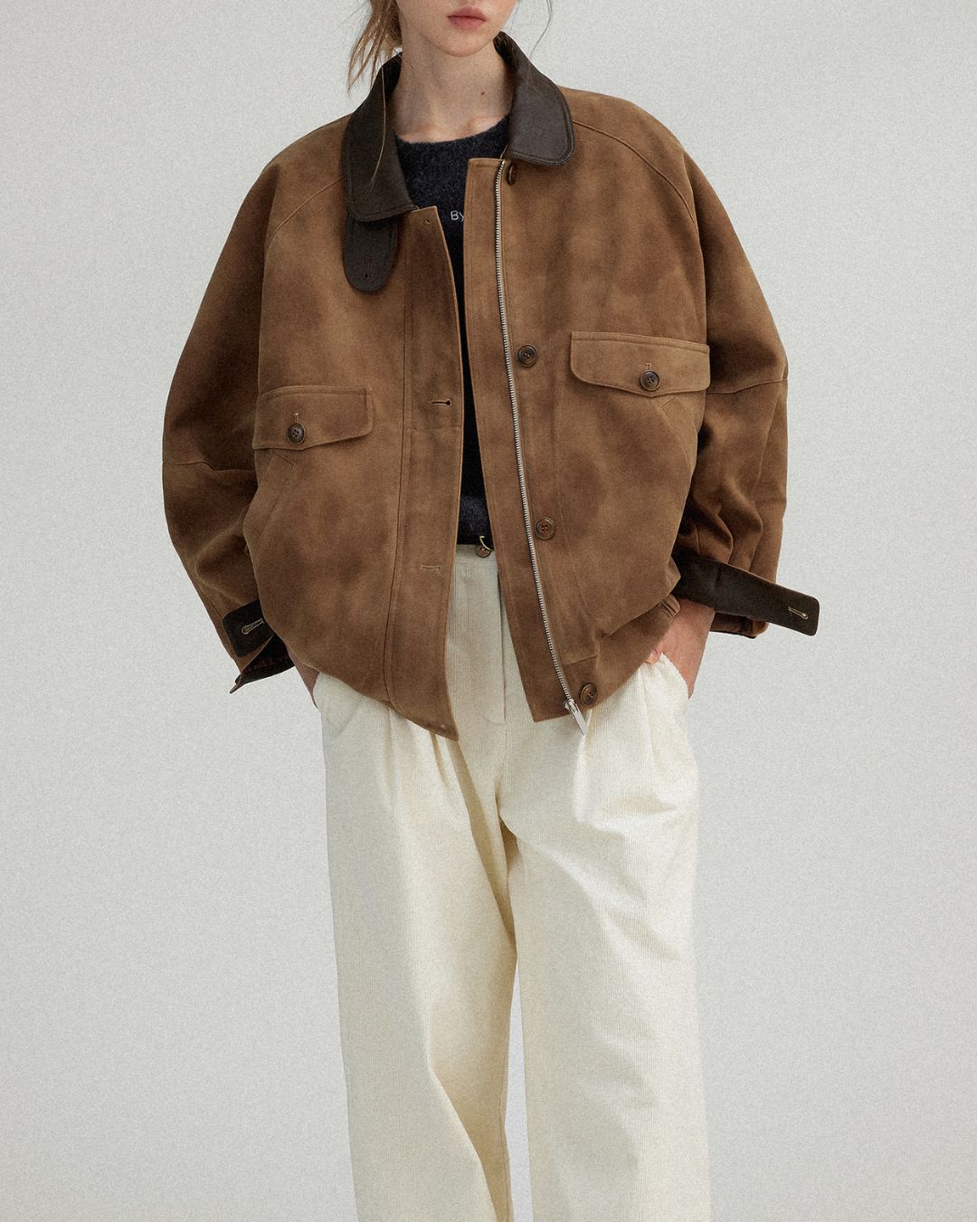 Leather Collar Suede Jacket JK028