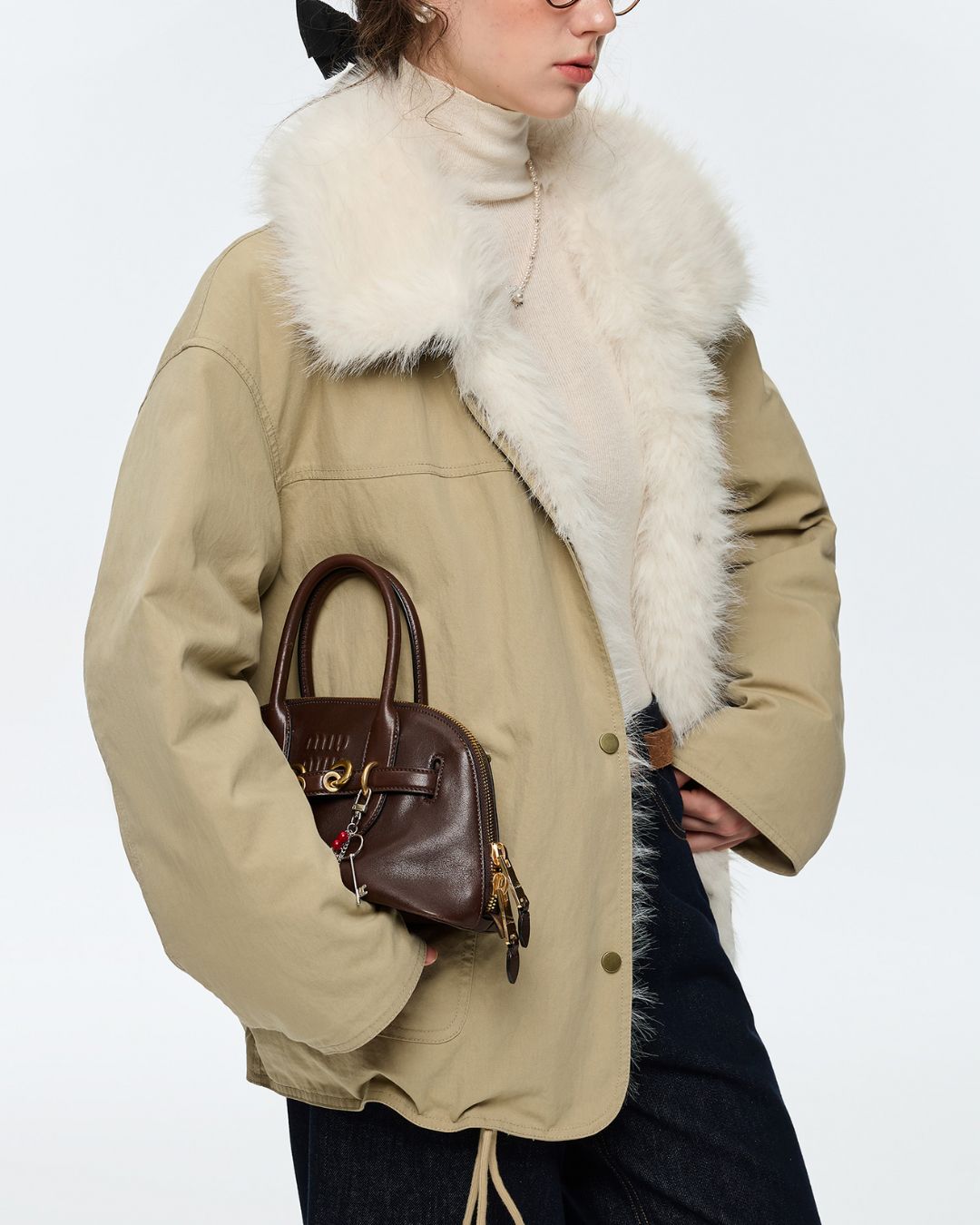 Drawstring Hem Fur Collar Down Jacket JK061