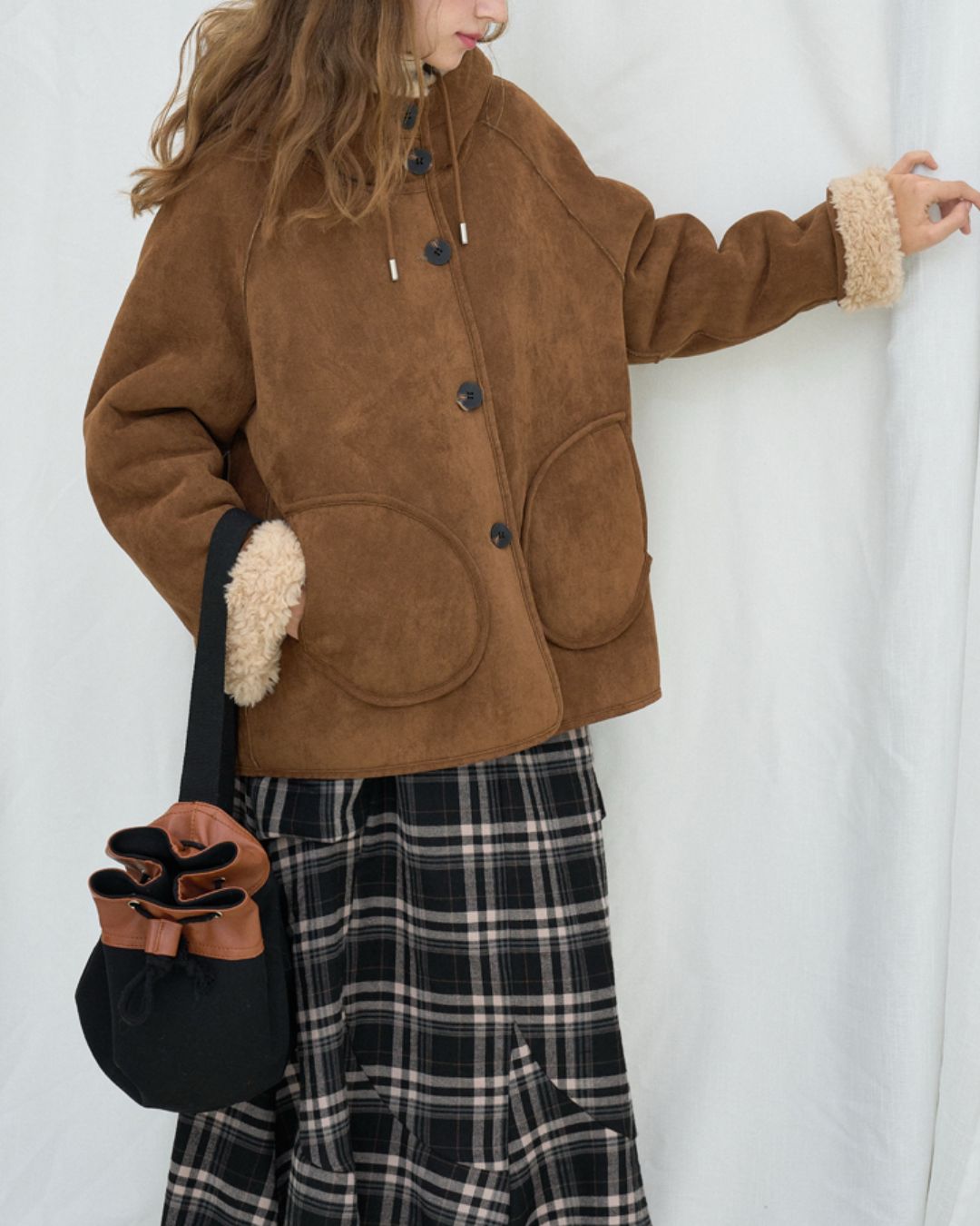 素材: ファー生地/ウール100% スエード生地/ポリエステル100%