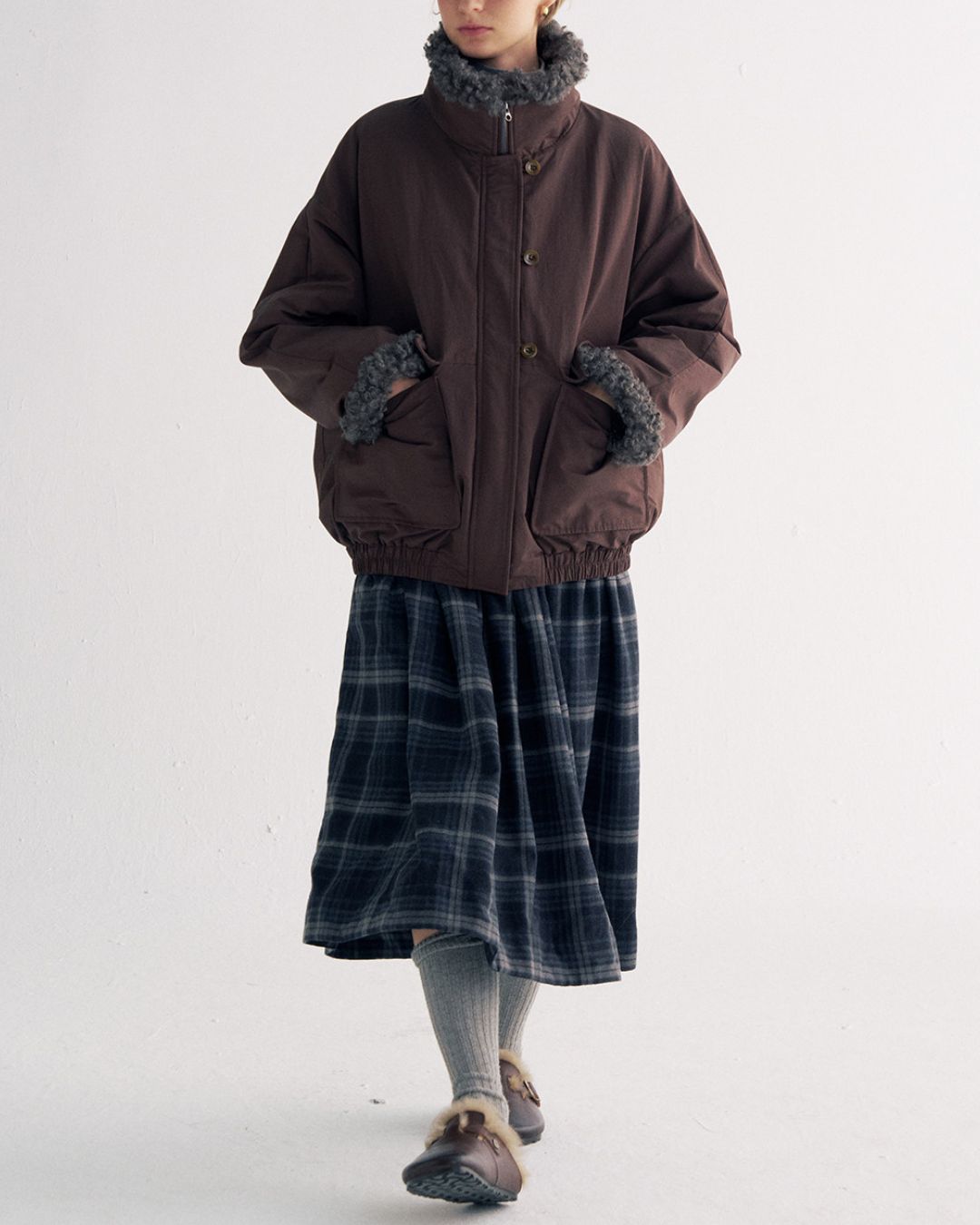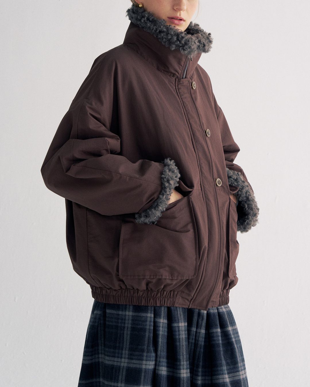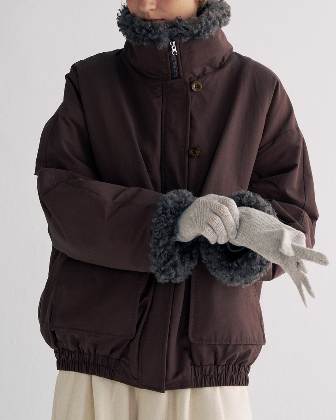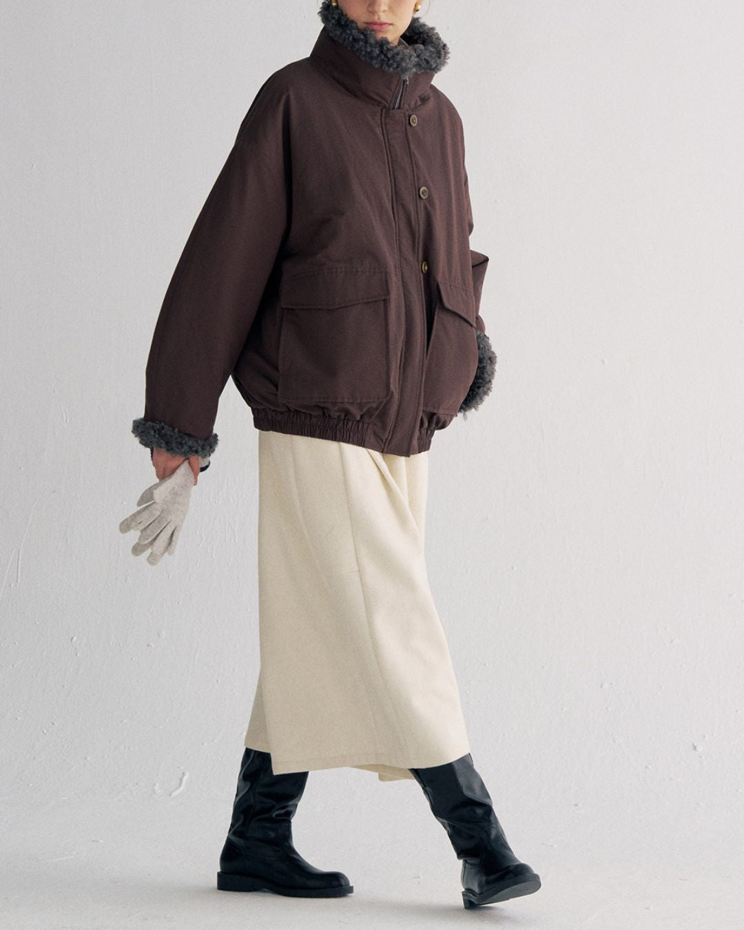 Stand-up Boa Collar Padded Jacket JK077