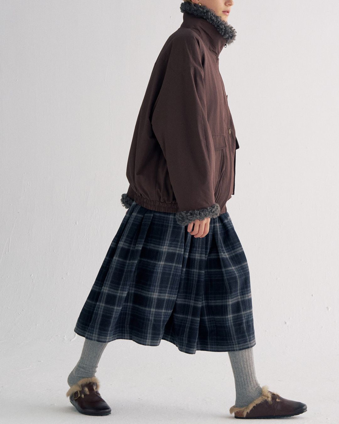 A-line Check Gathered Skirt SK021