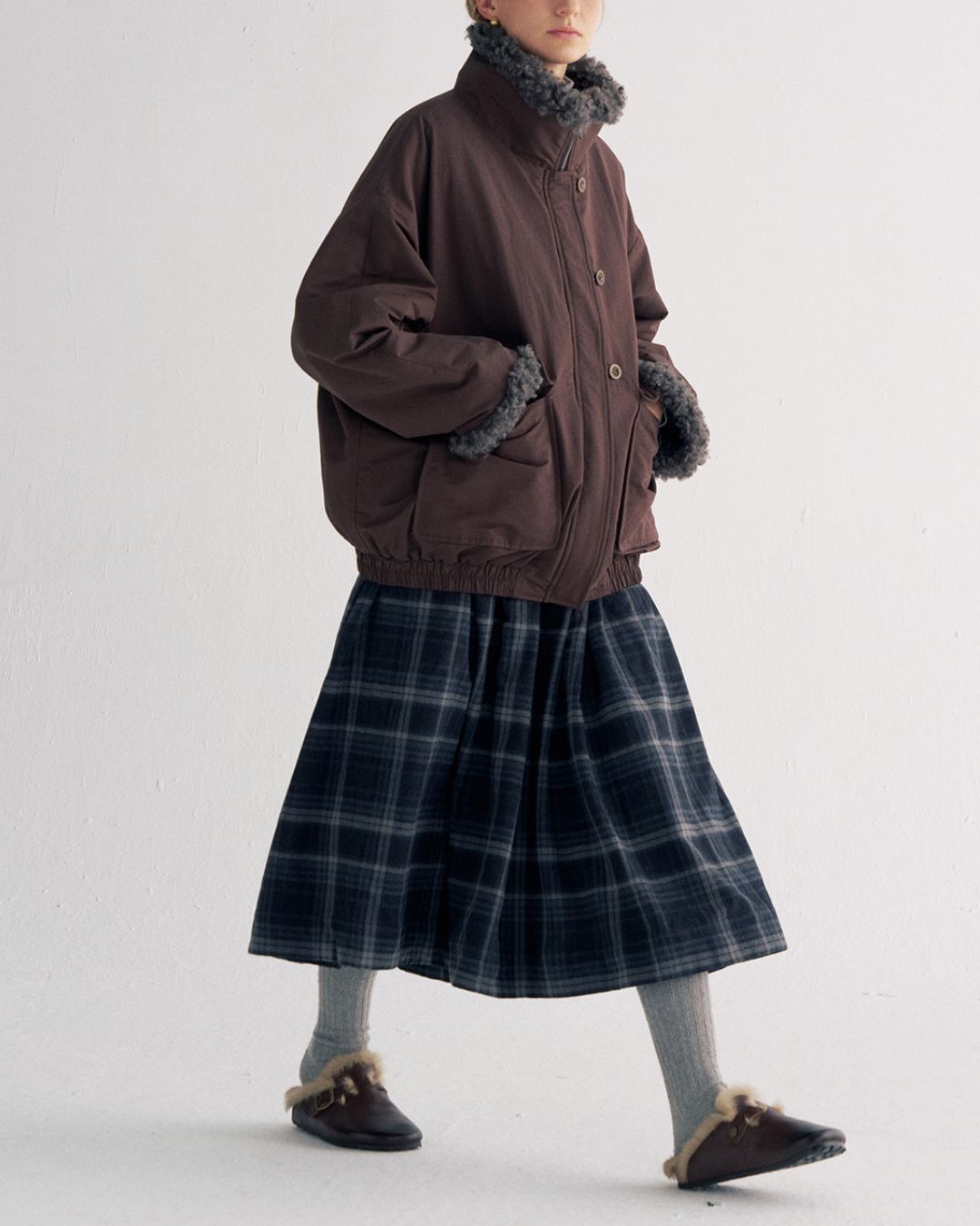 素材: ブラウン表地/コットン73% ナイロン27%