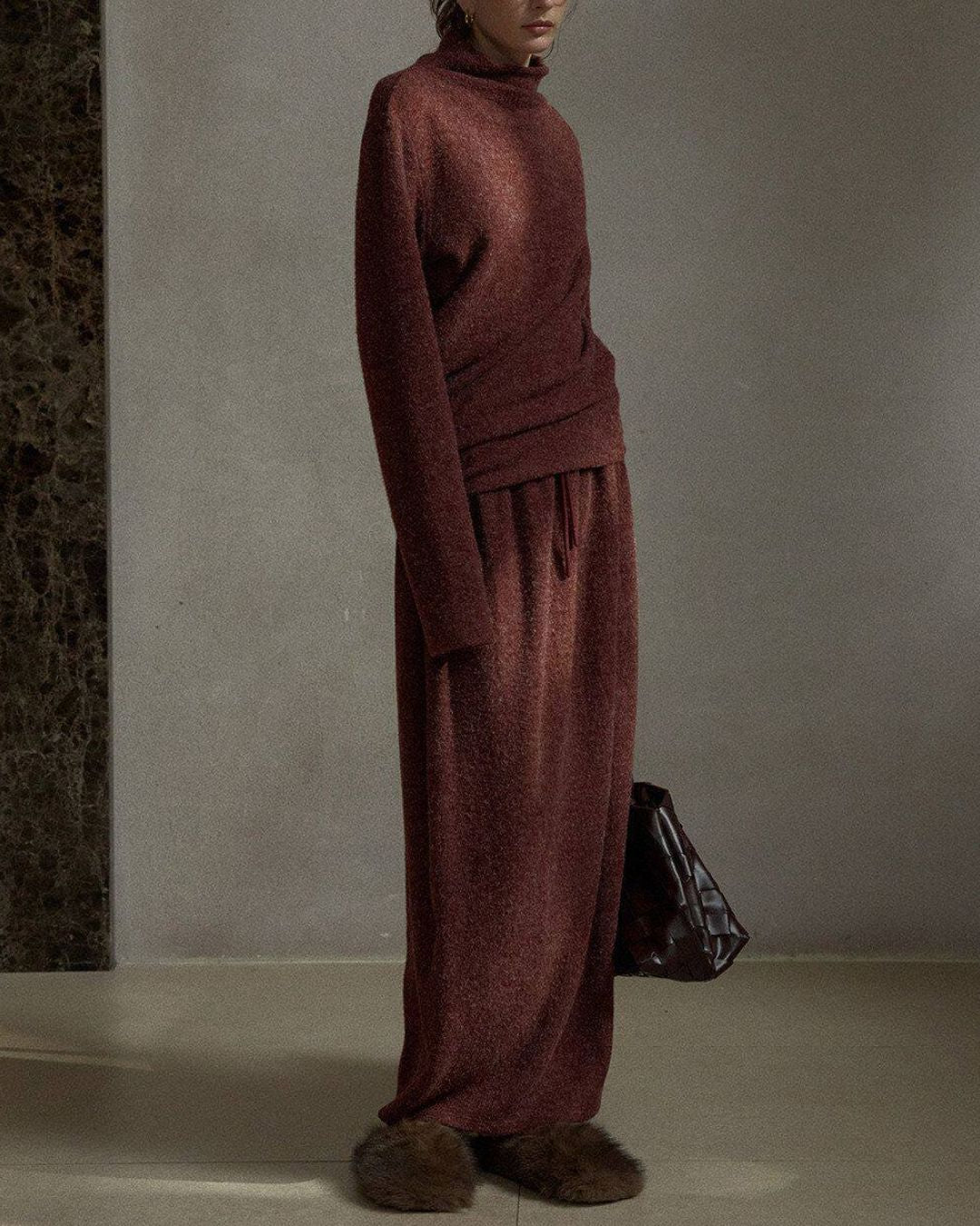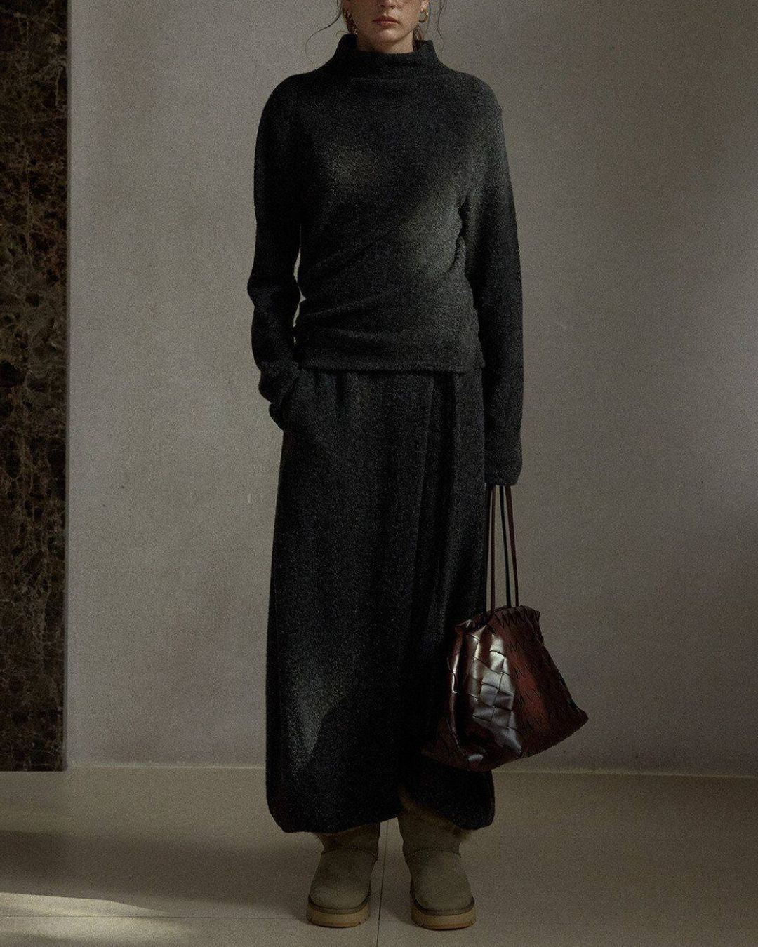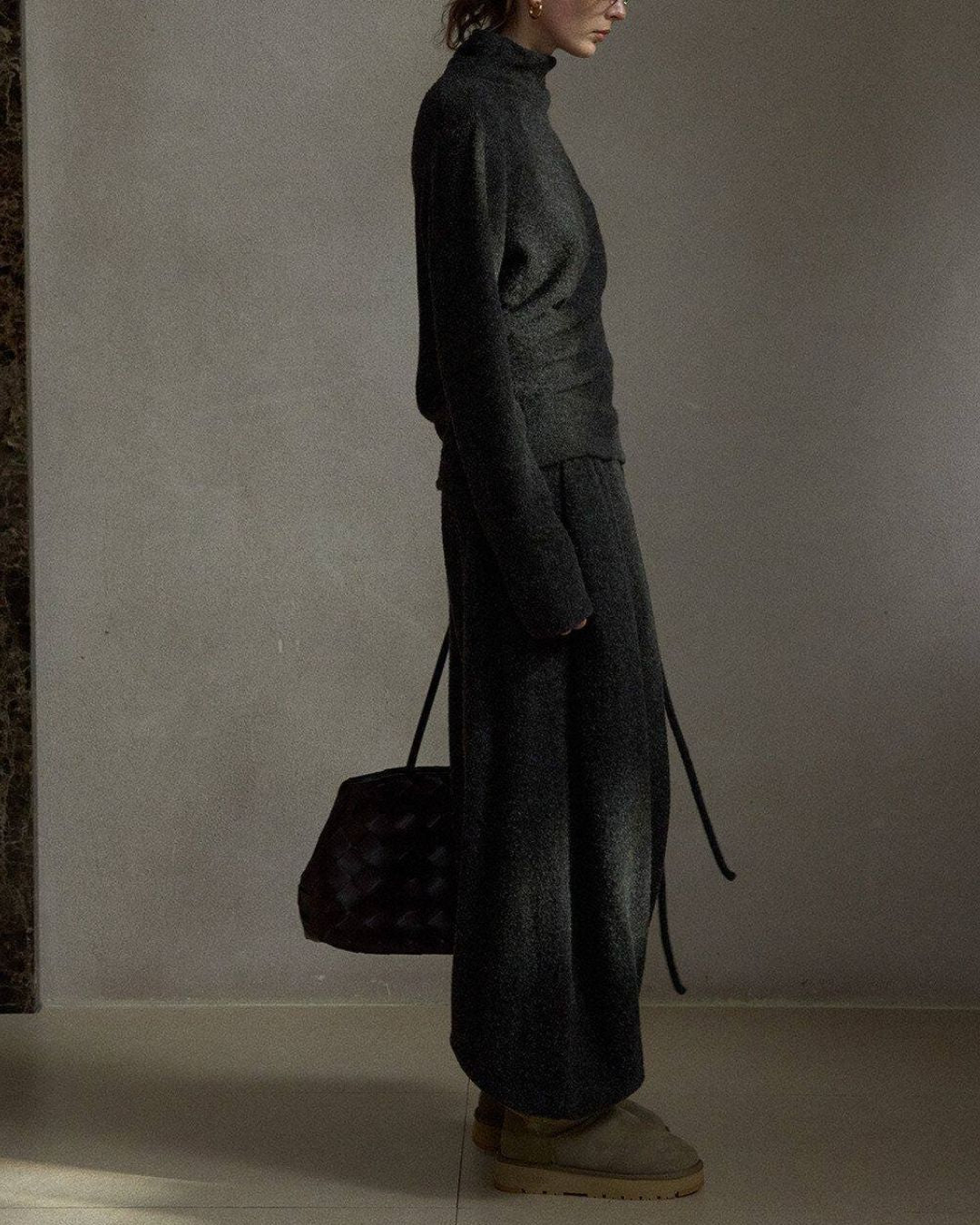 Asymmetrical Hem High Neck Knit KN107