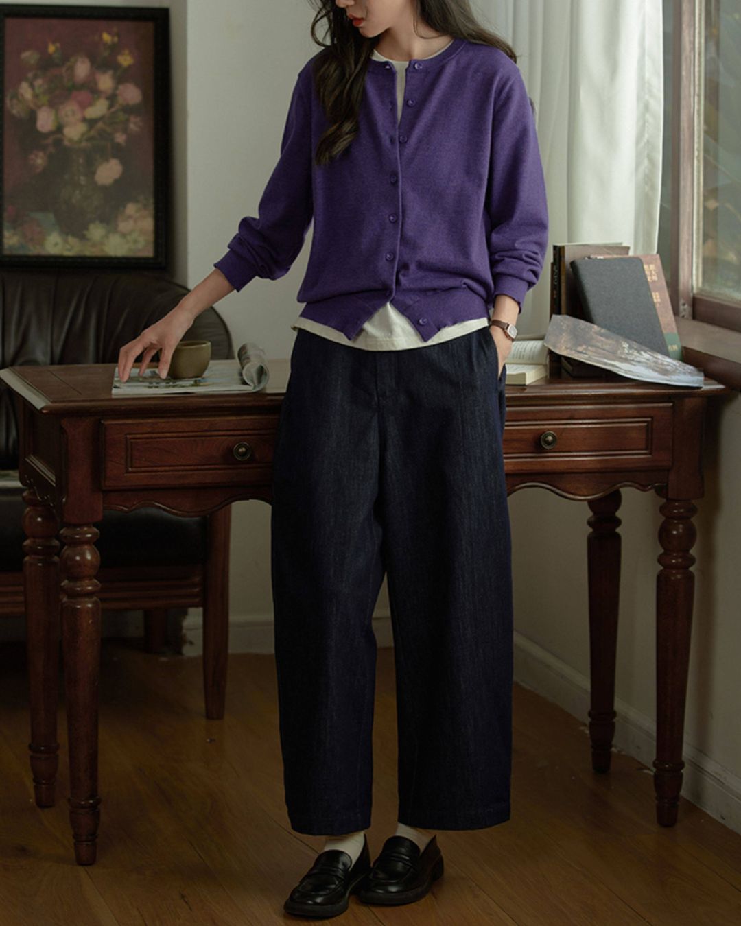 Round Neck Basic Knit Cardigan KN113