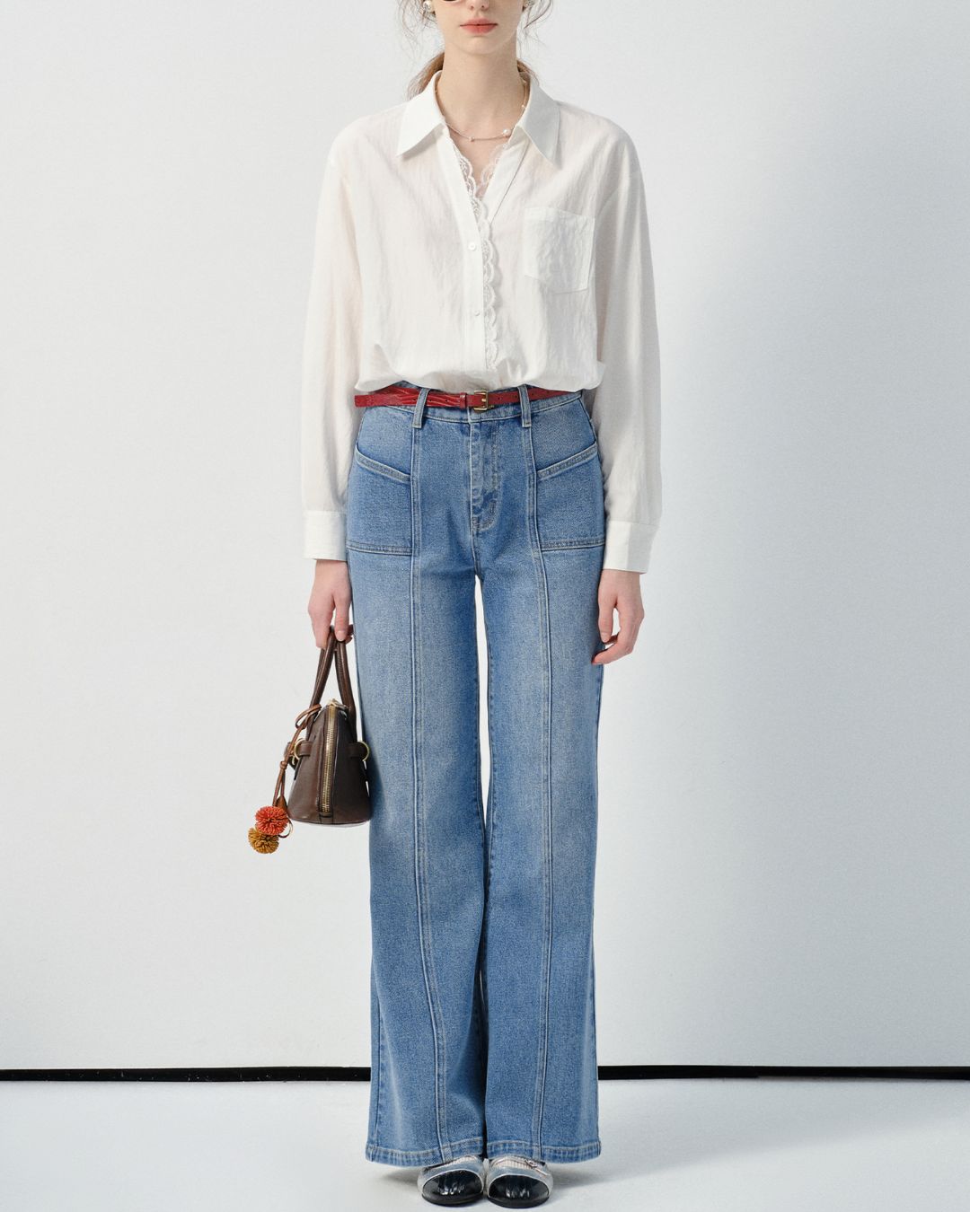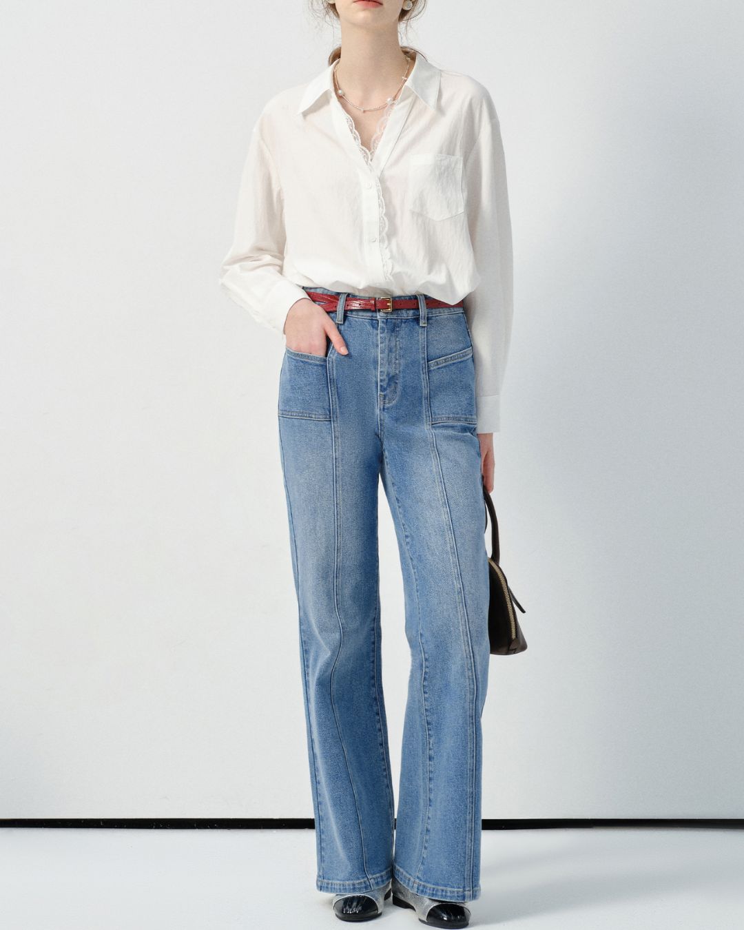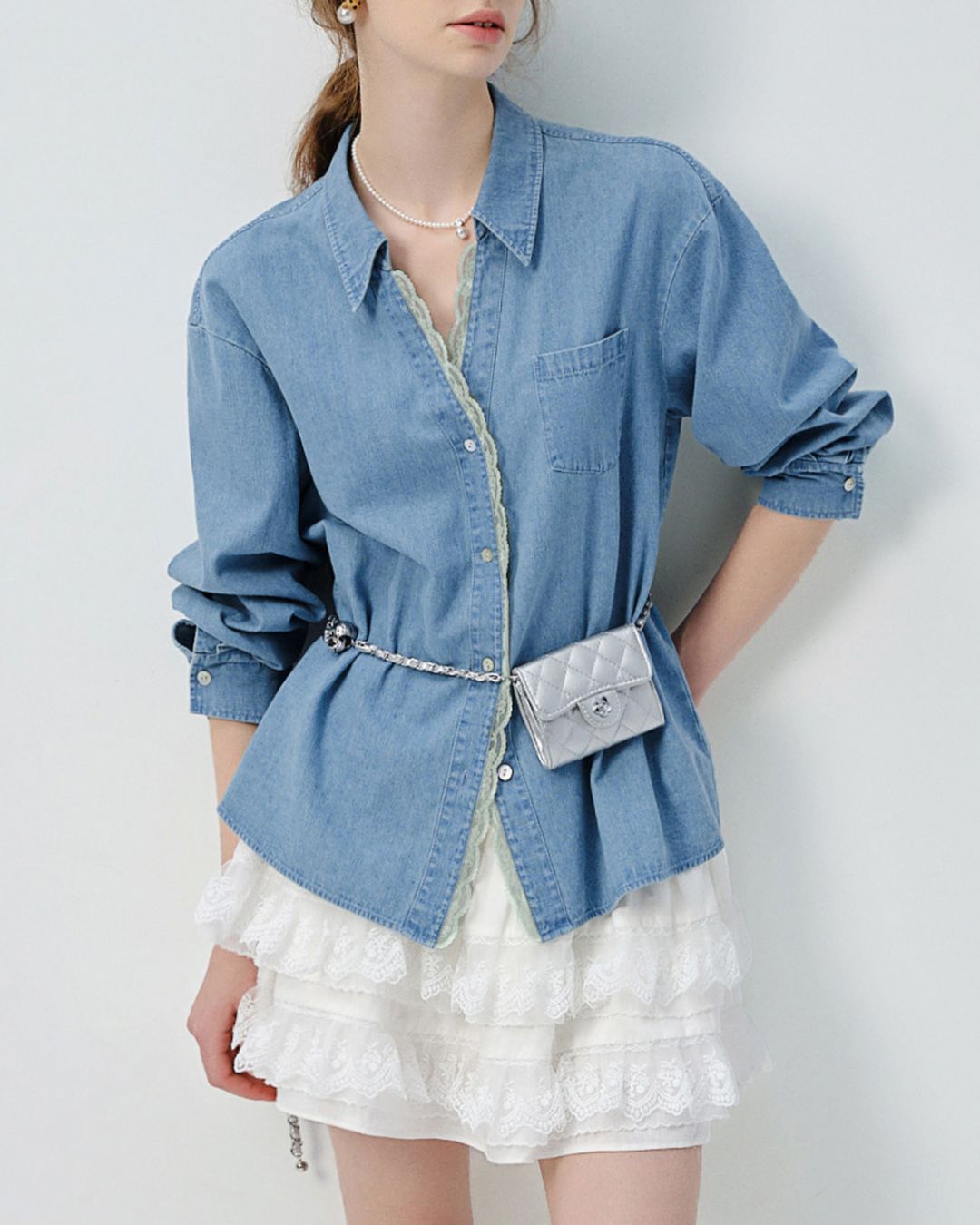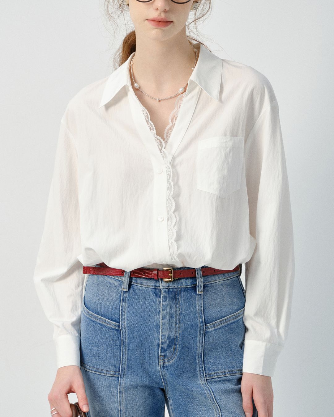 Lace V-neck French Shirt LS033