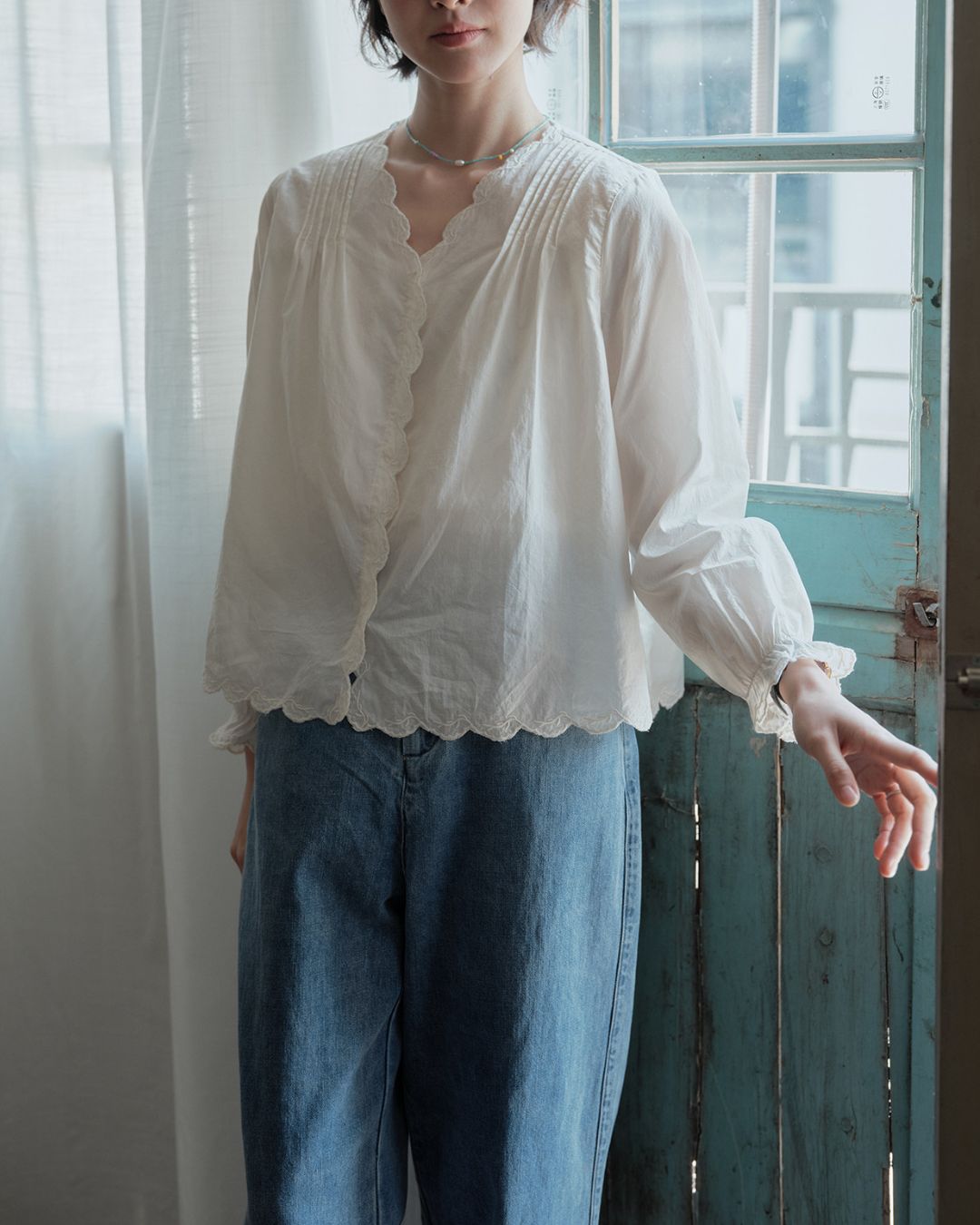 Lace V-neck French Shirt LS033