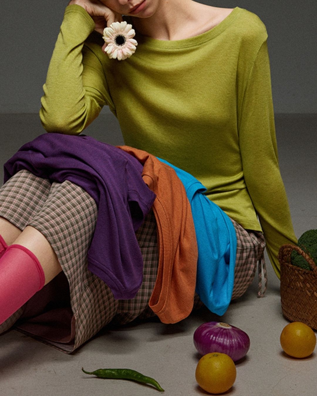 オレンジ ・ライトグリーン・パープル/テンセル68% ウール32%