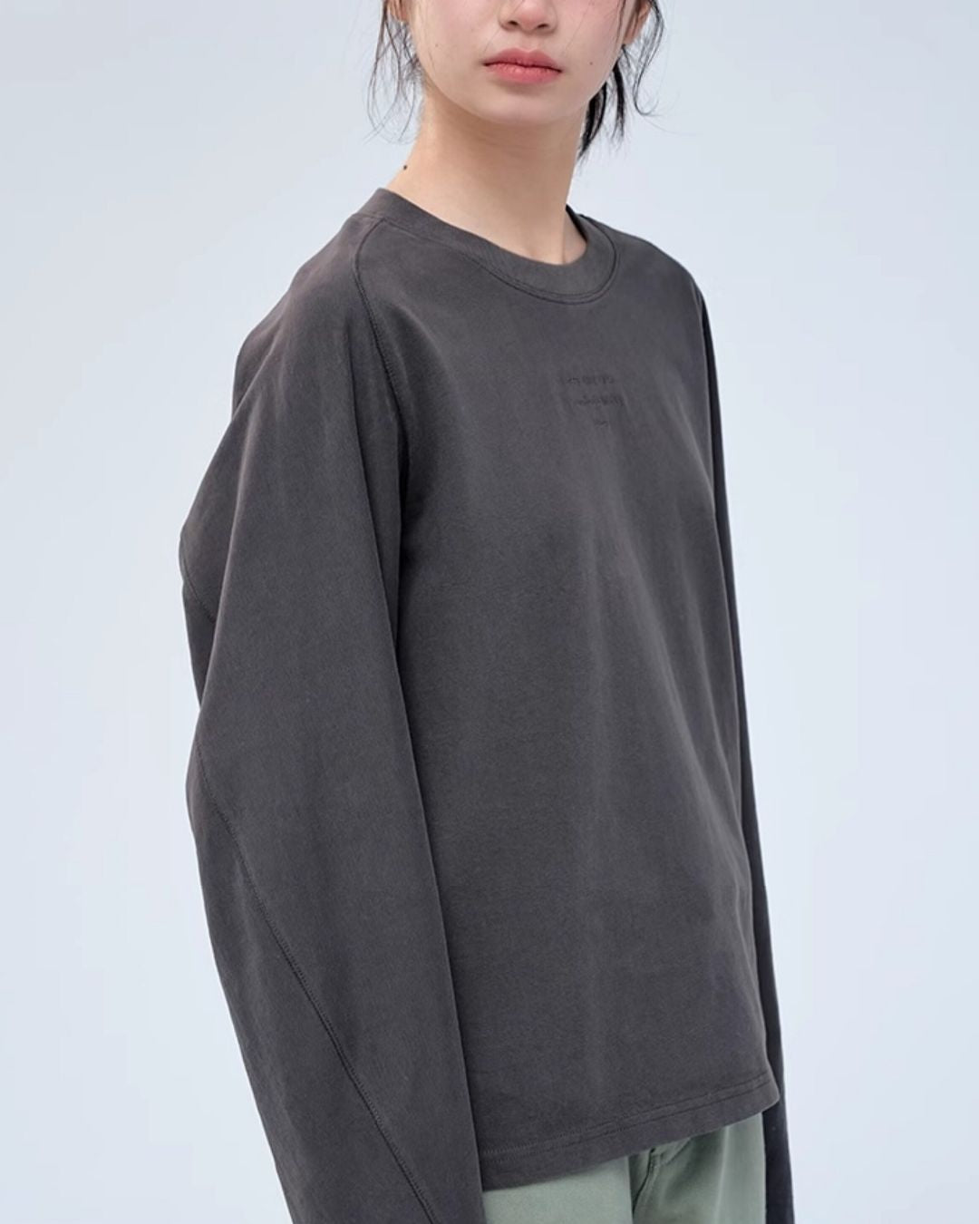 Text Embroidered Cotton Loose T-shirt LT024