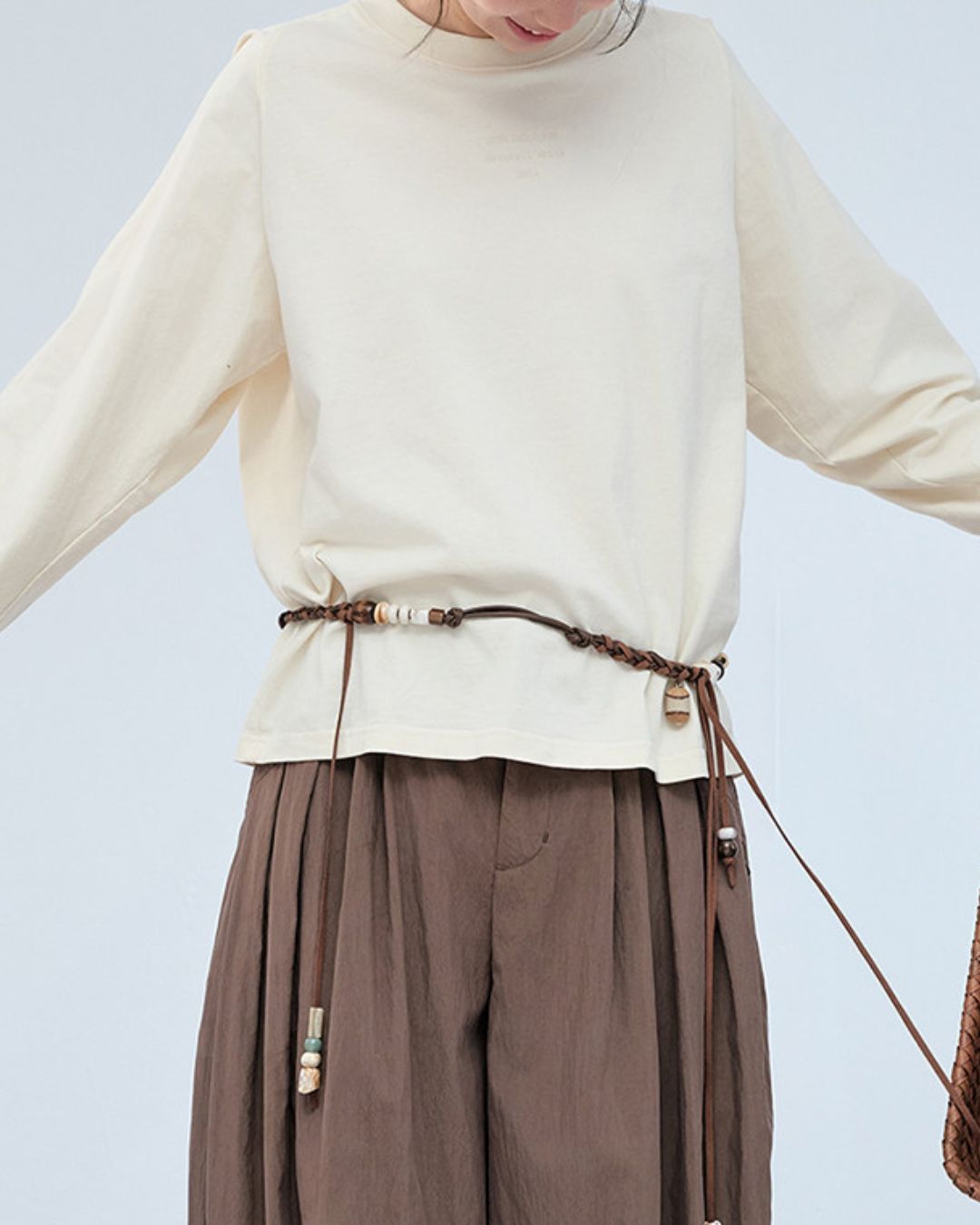 Rope & Leather Tag Tuck Wide Pants PT033