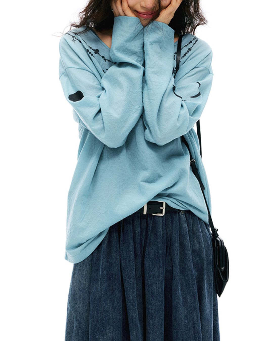 Text Embroidered Cotton Loose T-shirt LT024