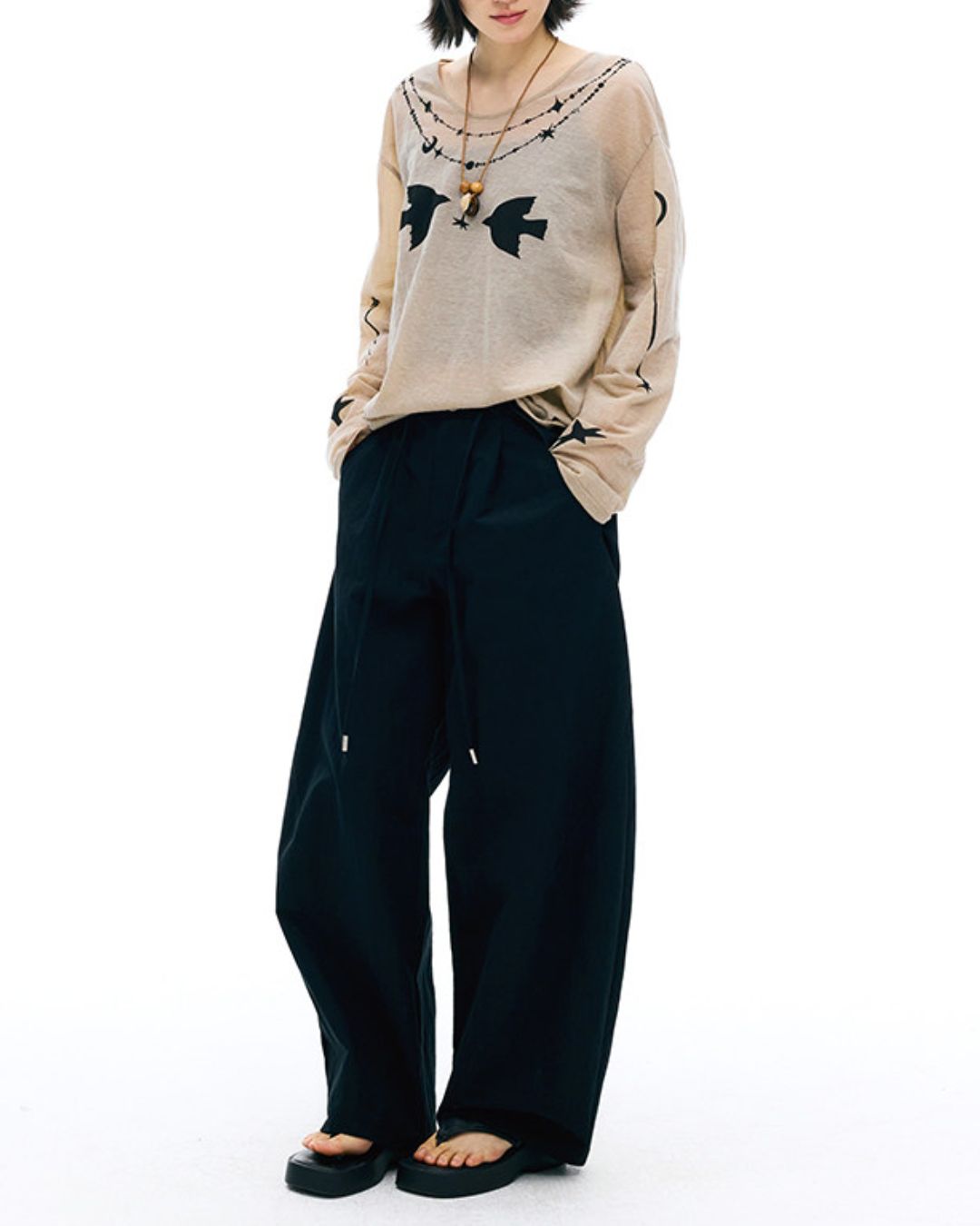 Rope & Leather Tag Tuck Wide Pants PT033