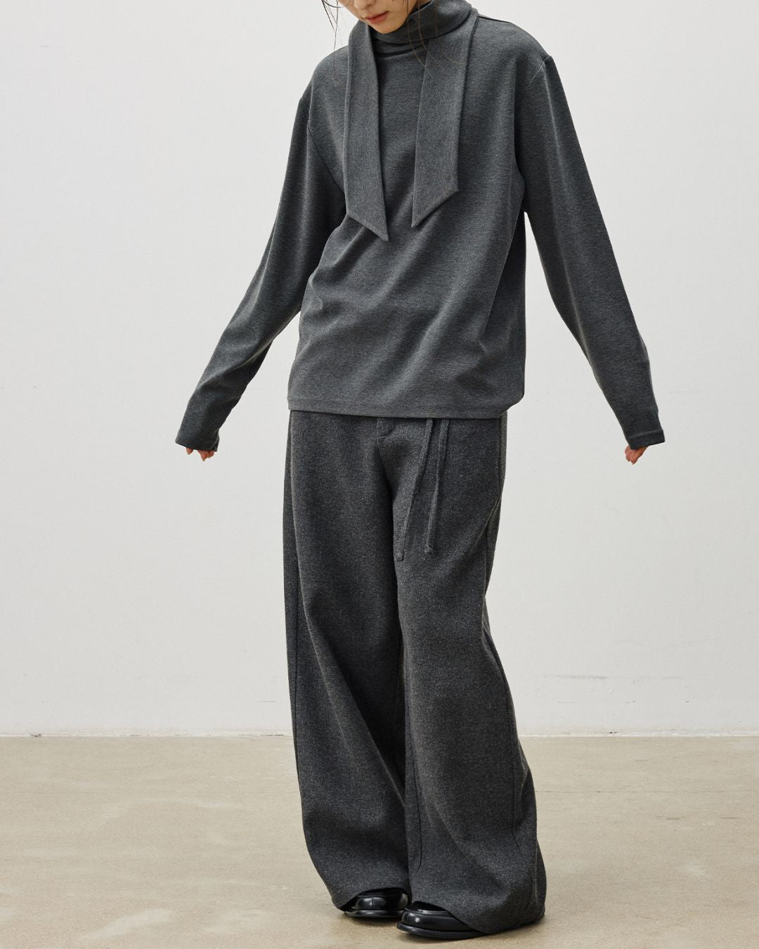 String-decorated Wool Wide Pants PT022