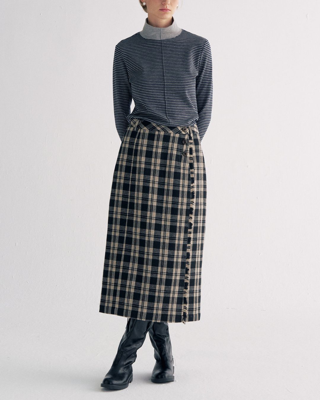 Check Wrap Midi Skirt SK016