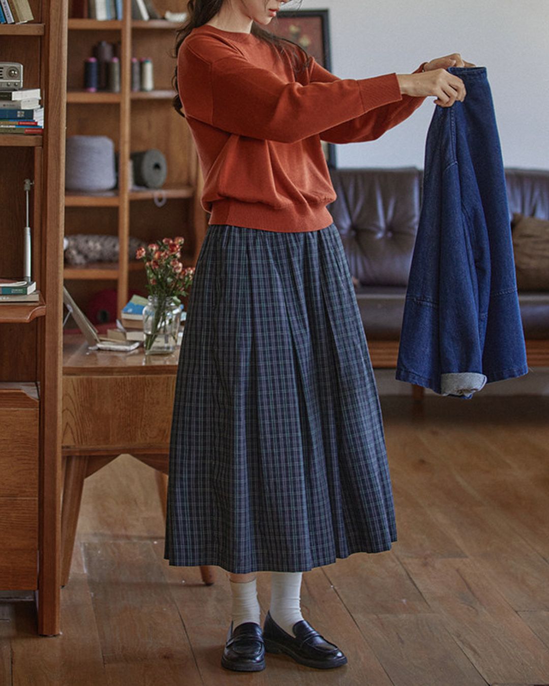 A-line Check Gathered Skirt SK021