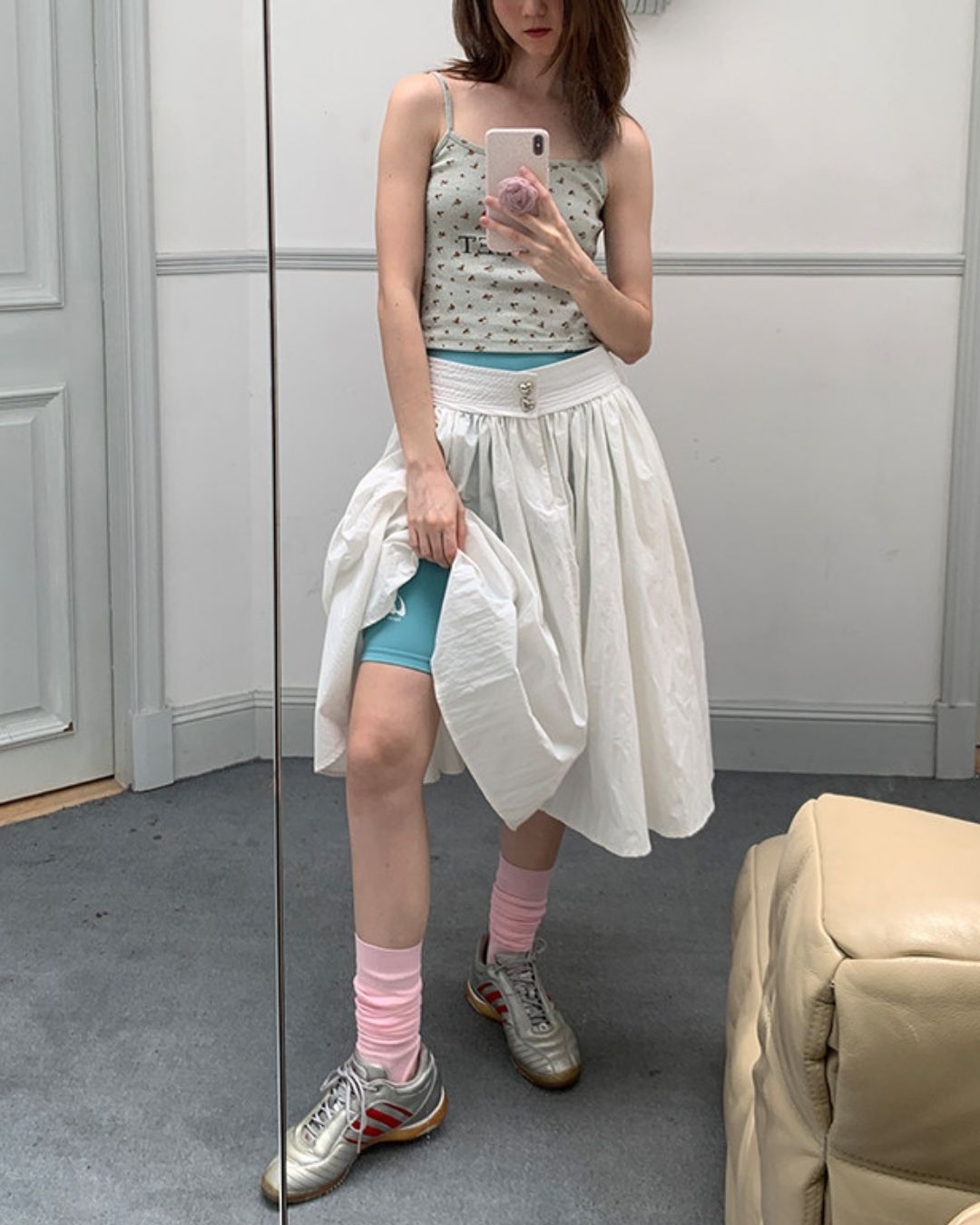 A-line Check Gathered Skirt SK021